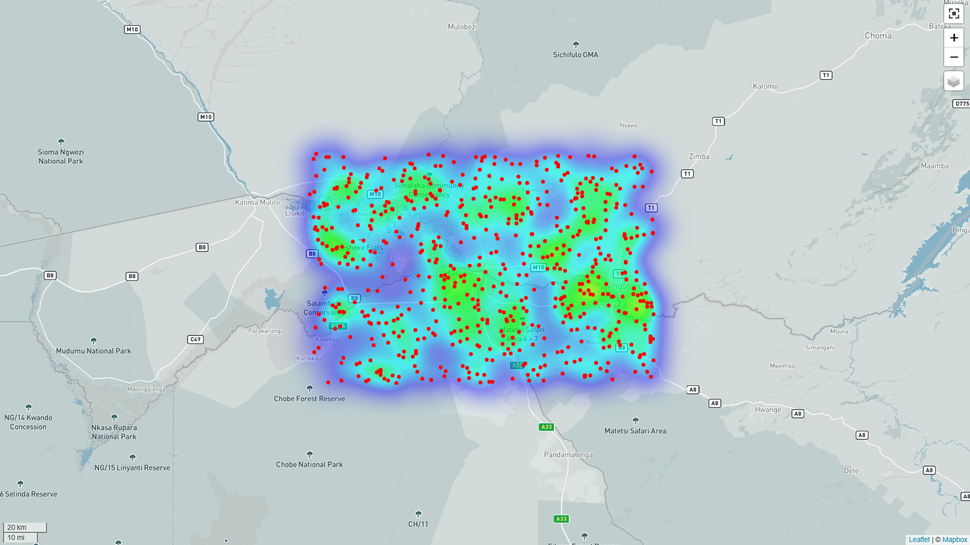 Generate maps by data source (e.g. Cluey groups or uploaded data) or across multiple data sources.
