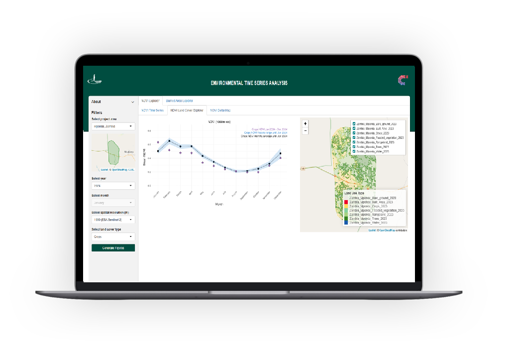Our Environmental Time Series Analysis lets you monitor environmental change over time - whether it’s vegetation health, drought, floods, or urban expansion - using satellite data and intuitive charts, maps, and land-cover insights. Get clear, actionable visuals to support smarter decisions in seconds.